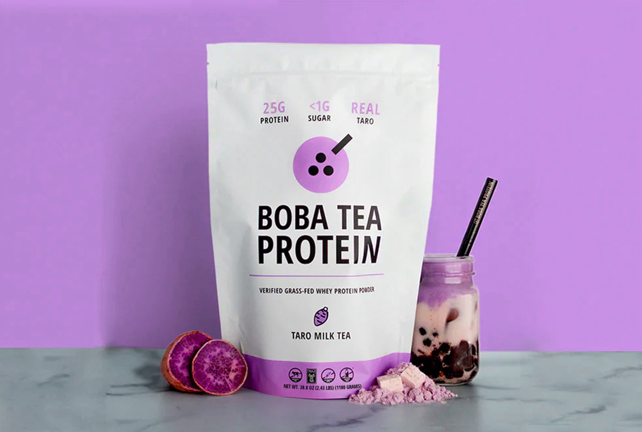 100% Verified Grass-Fed Whey Protein Isolate, Organic Taro Powder, Coconut Oil Creamer, Organic Purple Sweet Potato Powder, Monk Fruit Extract, Salt  |
